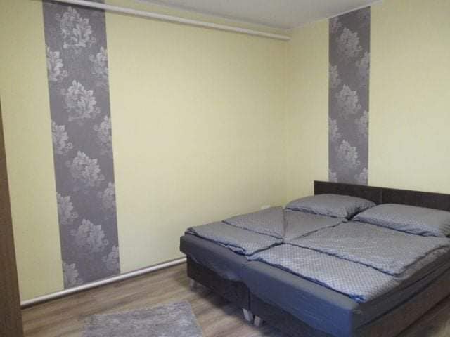 Az apartman Lesenceistvándon, egy családi ház alsó szintjén található.